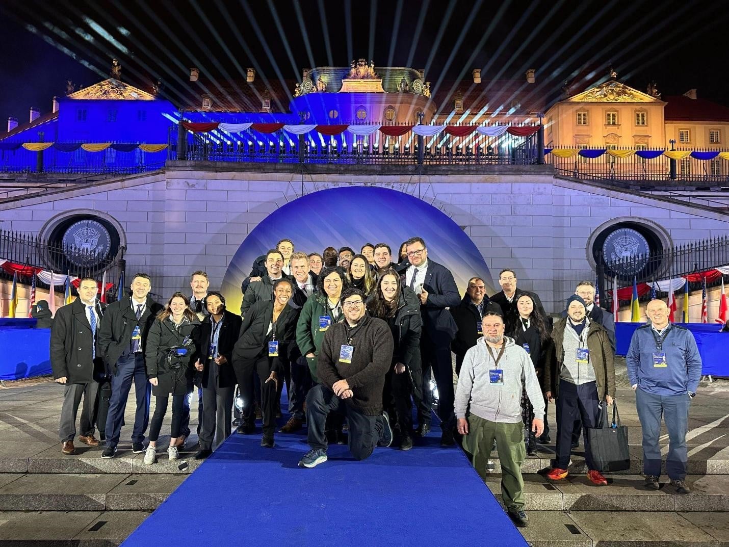 Ian Mellul and his team in Warsaw, Poland, at the Royal Castle Gardens following President Joe Biden’s February 2023 remarks after a surprise visit to Ukraine.