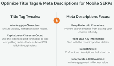 Optimization of all titles and meta descriptions is essential to ensure they resonate with mobile users and support mobile SEO optimization efforts.
