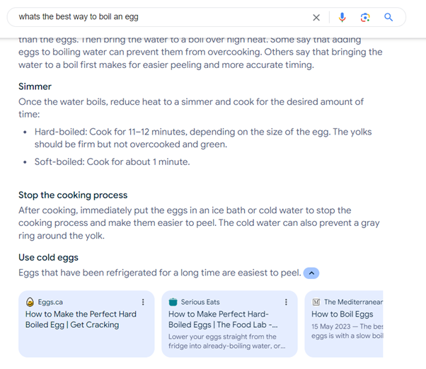 For those of you that noticed it earlier, at the bottom of the AI result snippet, Google outputs some small tile results which link to the websites it used for inspiration to form the answer shared on screen.